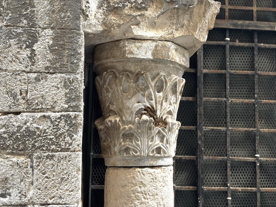 L’abitato che si affaccia lungo la via è caratterizzato dalla presenza di numerosi elementi architettonici medievali. A metà strada è ubicato un palazzo edificato in due periodi storici. Al piano terra, costruito nel medioevo, si apre un ampio arco in stile romanico-pugliese. A sinistra trova collocazione una colonna di reimpiego, cioè proveniente da un altro edificio, coronata da un capitello in stile bizantino. Tre arcate cieche fiancheggiano l'arco centrale. Il piano terra, verosimilmente una chiesa, è databile tra XII e XIII secolo. Con la sopraelevazione del palazzo in età moderna, l’edificio di culto fu trasformato in abitazione privata. Proseguendo oltre, si scorge sulla destra un'edicola votiva raffigurante i Santi Medici Cosma e Damiano.