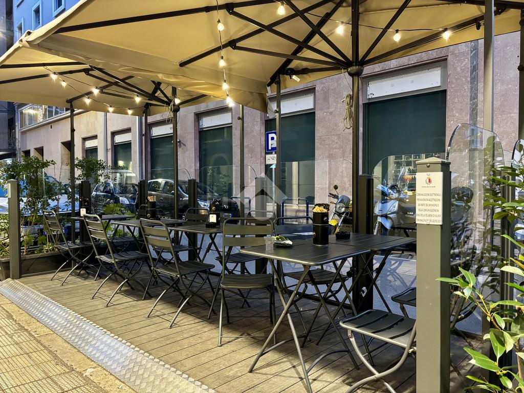 Il locale gode di cinque ampie vetrine che garantiscono grande visibilità e luminosità. È dotato di canna fumaria, impianto . per aspirazione e trattamento dell’aria, prese trifase, porta d’emergenza, climatizzatore inverter e sistema di videosorveglianza. All’esterno è presente un dehor di proprietà, realizzato su misura, delle dimensioni di 5 metri per 2, ideale per aumentare i coperti e valorizzare l’esperienza della clientela.